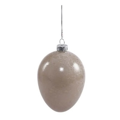 Dekorativt kunstigt hønseæg i brun. Perfekt til påskearrangementer og kreative dekorationer. Ægget måler 6 cm i bredde og 8 cm i højde. Robust design, der kan hænges op. Ideelt til både traditionelle og moderne udsmykninger.