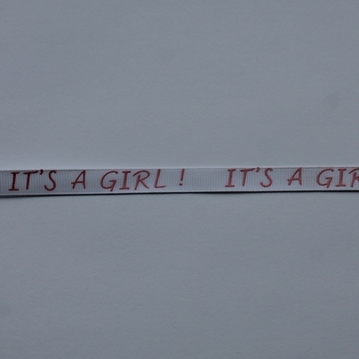 Dette smukke lyserøde bånd med teksten "IT'S A GIRL" og hvid baggrund er perfekt til dekorationer til mor/barn, barnedåb eller som en fin detalje på kort og gaveindpakning. Båndet er 7 cm bredt og sælges pr. meter. Minimum 2 meter anbefales til at skabe en flot sløjfe.