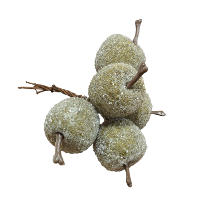 Smukke grønne dekorationsæbler med let frostet overflade. Hvert sæt indeholder 5 æbler med en diameter på ca. 2,5 cm. Perfekte til dekorationer, kranse, julepynt og kreative binderiprojekter. De naturtro detaljer og den afdæmpede grønne nuance giver et elegant og harmonisk udtryk.