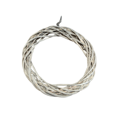 Dekorativ grå krans i naturflet med let patina. Diameter ca. 18 cm og højde 2,5 cm. Perfekt som base til kreative dekorationer, kransebinding eller naturlig pynt året rundt.