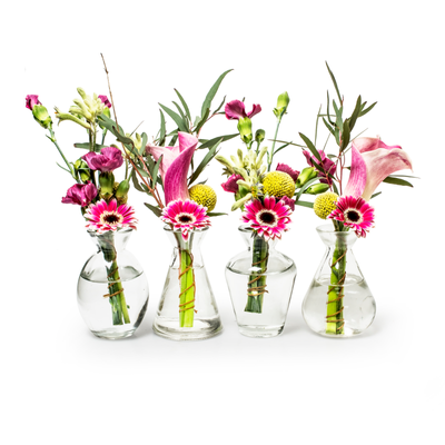 Disse glasvaser er perfekte til bordpynt eller andre kreative arrangementer. Med en højde på 10 cm og leveret som et sæt på 4 vaser, tilføjer de en enkel og stilfuld detalje til ethvert rum.