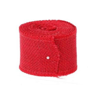 Rødt jutebånd i klassisk naturkvalitet, fremstillet af slidstærkt jutevæv med en bredde på 50 mm. Båndet leveres i en rulle på 5 meter og har et rustikt, naturligt udtryk, der passer perfekt til både moderne og traditionelle dekorationer.