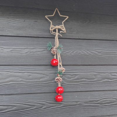 Smukt og stemningsfuldt ophæng med tre røde bjælder dekoreret med udstansede stjerner. Ophænget er pyntet med naturtro kogler, grene og røde bær, som tilsammen skaber et hyggeligt og klassisk juleudtryk.