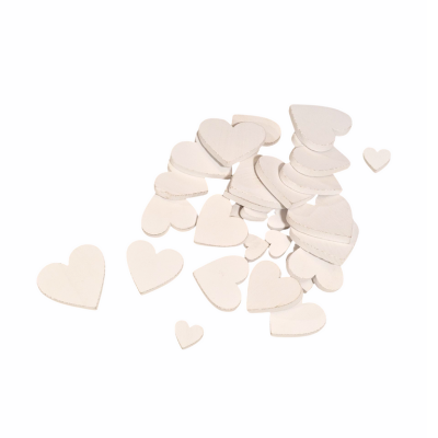 Dekorative hjerter i rustik hvid, 30 stk. i tre størrelser. Perfekt til dekoration, kreative projekter og blomsterarrangementer.
